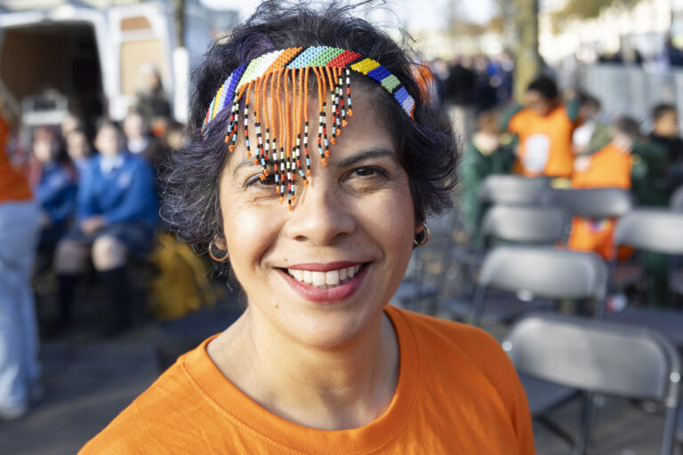As is tradition, the ceremony concluded with a shared “Common Gesture”: a moment of human connection where Martin invited each person to turn to their neighbour to reflect and speak about what hope means to them. The SDG symbol and a tapestry of the past 17 October images were symbolically carried to the stone by Stewart, Mary and Angela ATD UK and Brendan ATD Brussels. ATD Ireland Community Activist Paul reflected on Andrew’s book and the brave people who have shared their testimony on October 17th over the past 25 years. Aye Aye Winn led us in a chant to commit ourselves in the fight against poverty with “Beauty, Strength and Unity!”